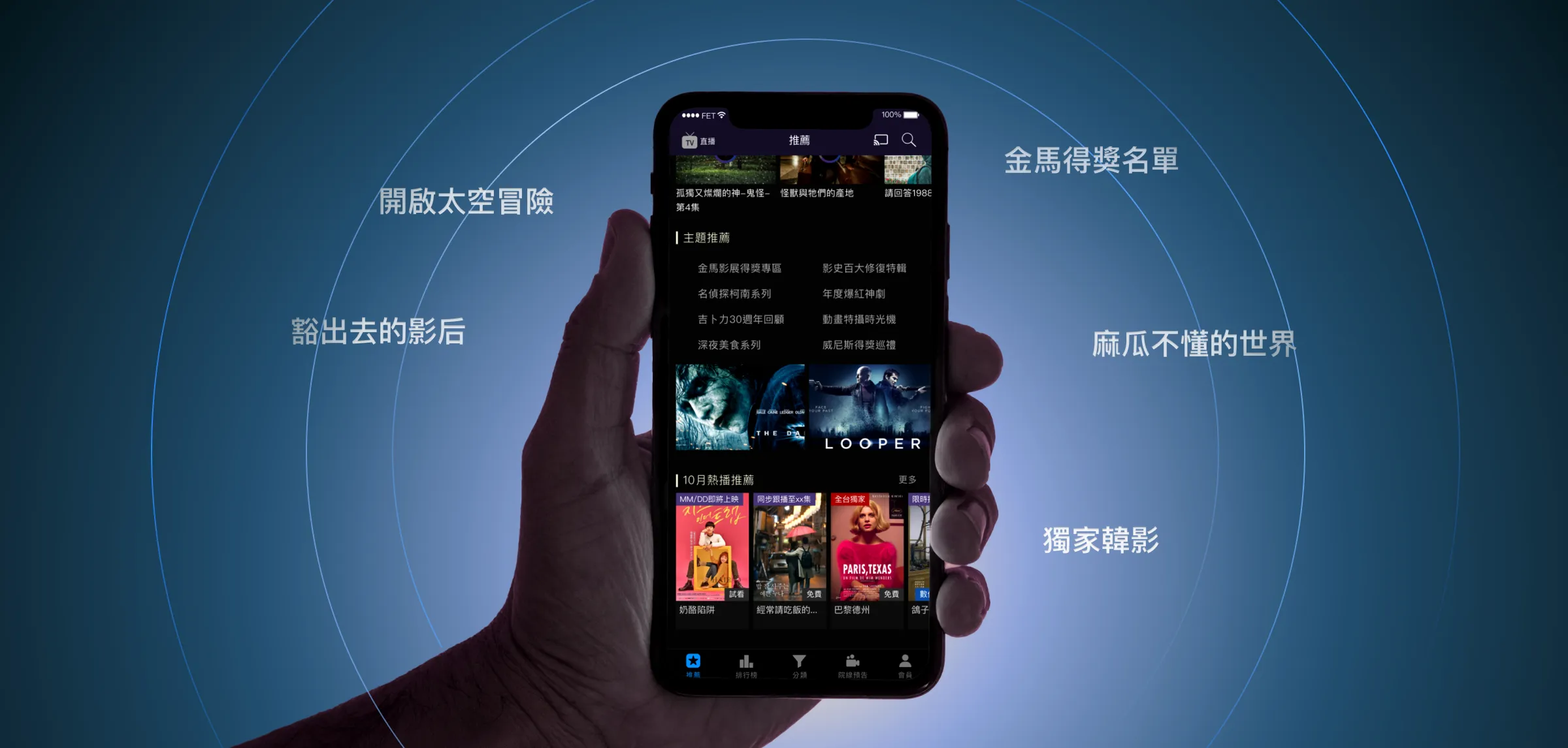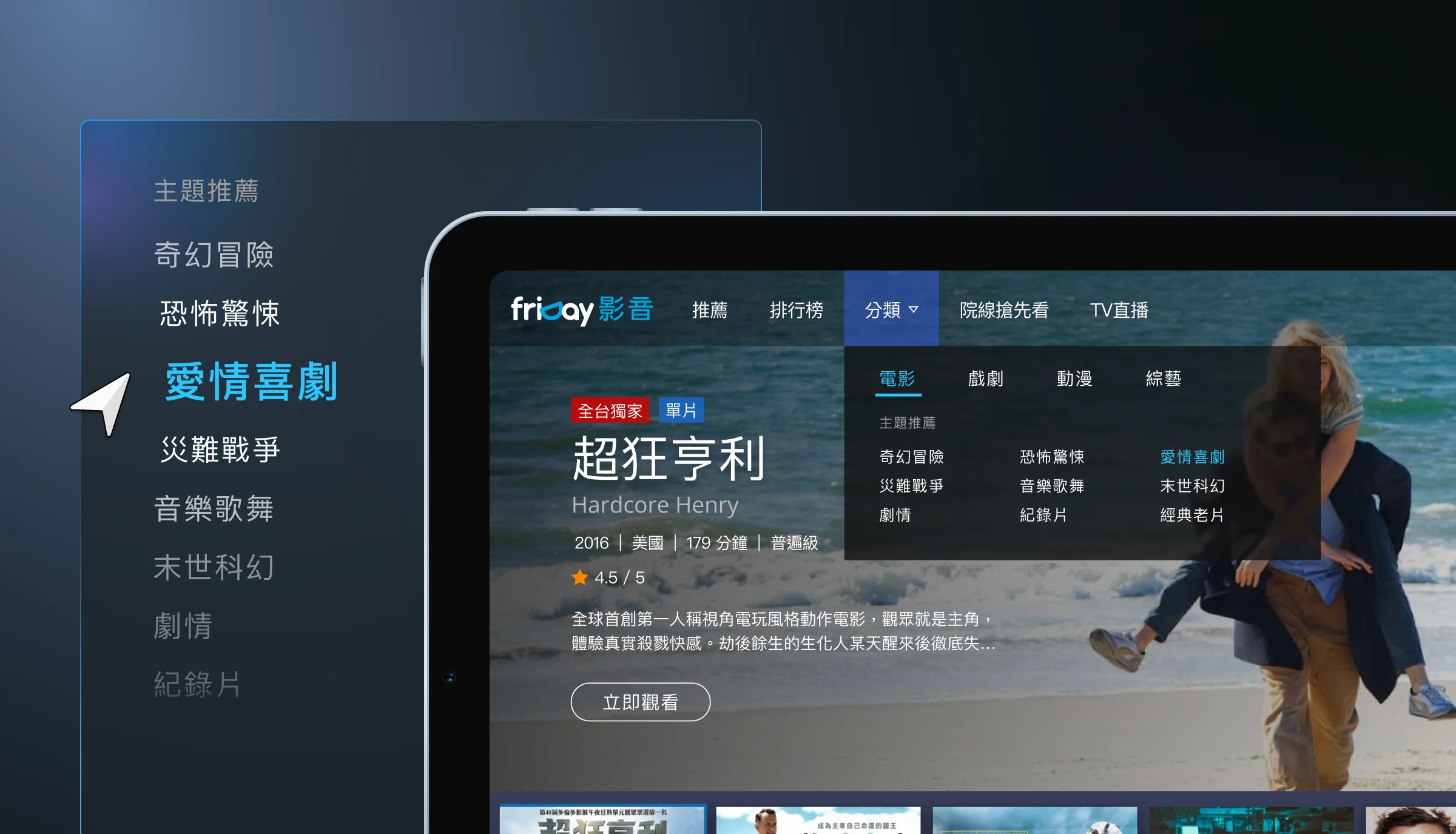 friDay影音是遠傳電信旗下核心影音平台,前身為「遠傳影城」,提供包括好萊塢院線片、韓劇、日劇、動漫、新聞直播等多樣影音內容,支援單片租借與無限觀賞功能,兼具隨選與直播服務,並致力於成為台灣最全面且具競爭力的影音平台。